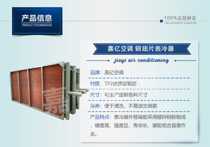 您好!歡迎來到靖江市嘉億空調(diào)設(shè)備制造有限公司官網(wǎng)! 表冷器系列 、加熱器系列 、不銹鋼蒸發(fā)器 、冷凝器 、 生產(chǎn)廠家
