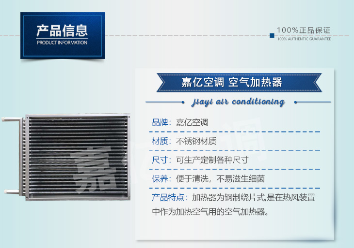 您好!歡迎來(lái)到靖江市嘉億空調(diào)設(shè)備制造有限公司官網(wǎng)! 表冷器系列 、加熱器系列 、不銹鋼蒸發(fā)器 、冷凝器 、 生產(chǎn)廠家